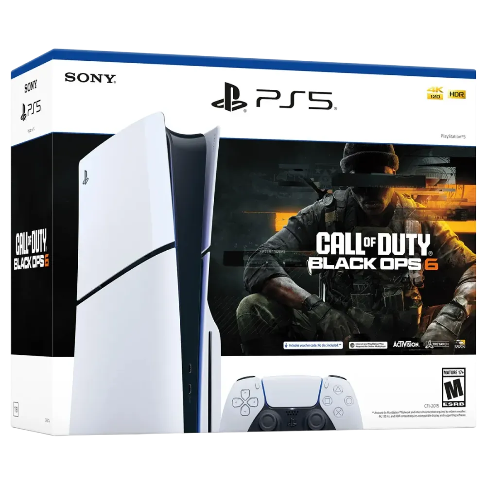 Sony (CFI-2016) PlayStation 5 Slim - 1Tb SSD- 16Gb - 1x Controller- COD Black Ops 6 Edition- White Processor: AMD Ryzen Zen 2 CPU Octa-Core 16Threads up to 3.5GHz Graphics: AMD Radeon RDNA 2-based graphics engine Memory: 16Gb GDDR6 RAM Storage: 1Tb SSD Optical Disk: Ultra HD Blu-ray Audio: Tempest 3D AudioTech Ports: 2x Super-Speed USB-A 10Gbps; 1x Super-Speed USB-C 10Gbps; 1x Ethernet LAN Port; 1x HDMI OUT port Connectivity: Wifi IEEE 802.11 a/b/g/n/ac/ax; Bluetooth 5.1 Includes: 1x Controller White; Call Of Duty Black Ops 6 Voucher (Preinstalled Game) Warranty: 1 Year Warranty Period
