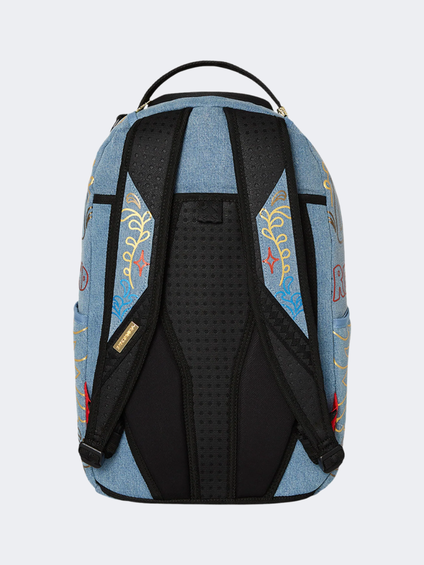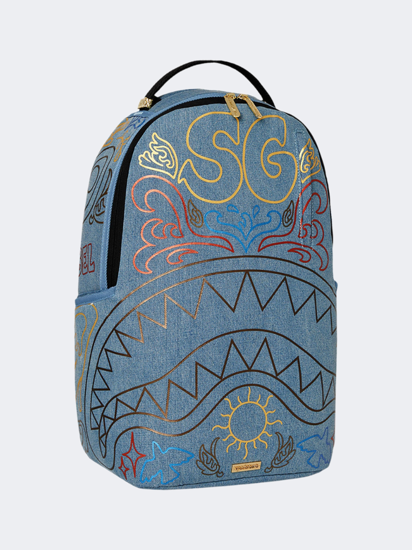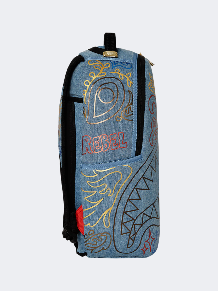 Spray Ground Metallic Printed Denim Shark Backpack One Compartment Lifestyle Bag For All.