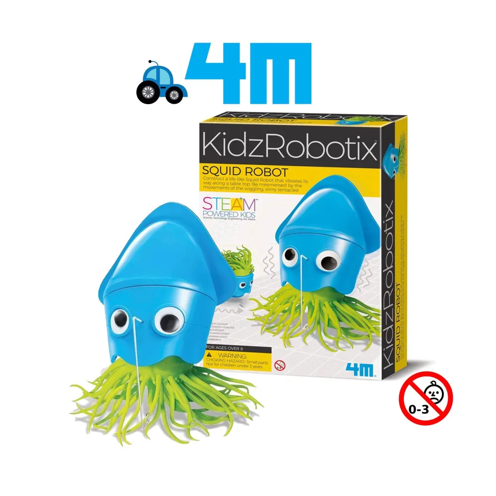 Construct a life-like Squid Robot that vibrates its way along a table top. Be mesmerised by the movements of the wiggling, slimy tentacles!