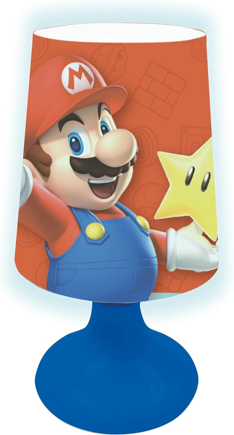 Cordless Mini Bedside Lamp and Nightlight Nintendo is an ideal addition to your kid's room. Decorated with Mario, it becomes a companion during play, study, and sleep times. The lamp features a lampshade that provides soft and even lighting, ensuring sufficient brightness while protecting their eyes. The lamp offers three lighting options: white light, multicolor light, and an off switch for versatility. With LED technology, it ensures low energy consumption. The power supply requires 3 x LR6/AA batteries of 1.5V, which are not included.
