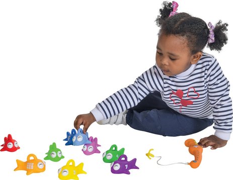 This bath toy is a great way for children to discover the fun of fishing while learning about numbers and shapes. It includes 2 fishing rods and 9 colorful fish, each featuring different numbers and shapes. Children can use the rods to catch the fish in the water.