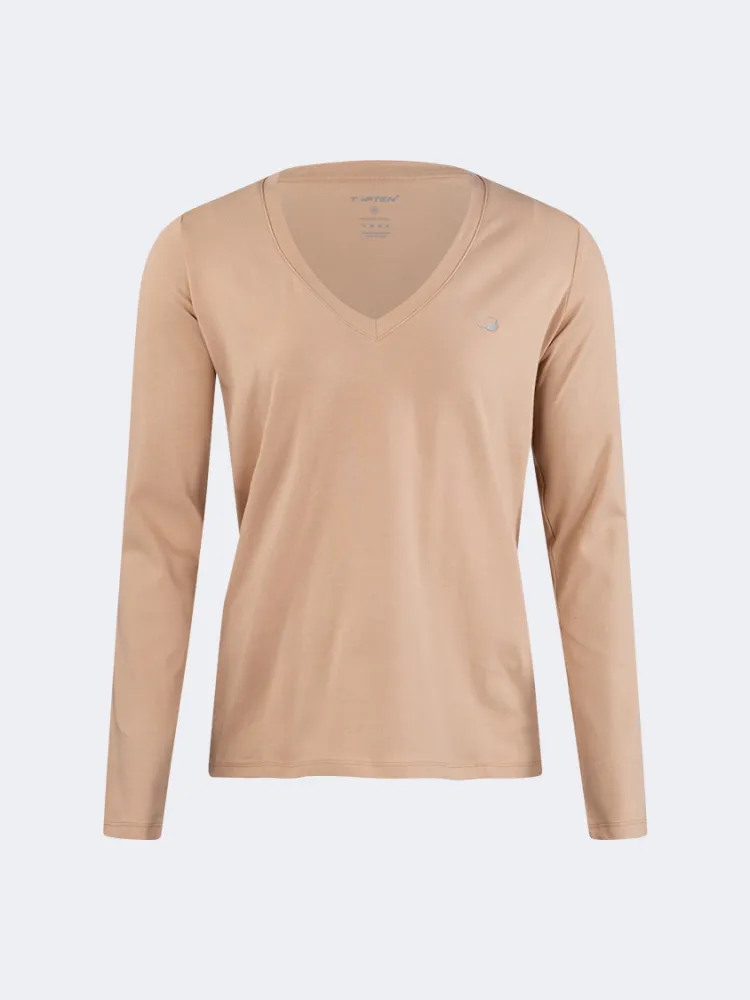 The Top Ten Classic Women Lifestyle Long Sleeve in Beige is a timeless piece designed for comfort and style. Perfect for casual outings, office wear, or layering during cooler months, this top offers a flattering fit with a soft and breathable fabric. Its minimalist design ensures versatility, making it a wardrobe essential for modern women.
