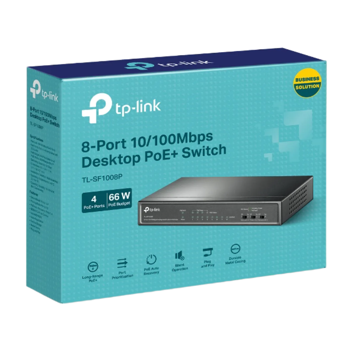 TP-Link (TL-SF1008P) 8-Port 10-100Mbps Desktop Switch - Black - with 4x Port PoE