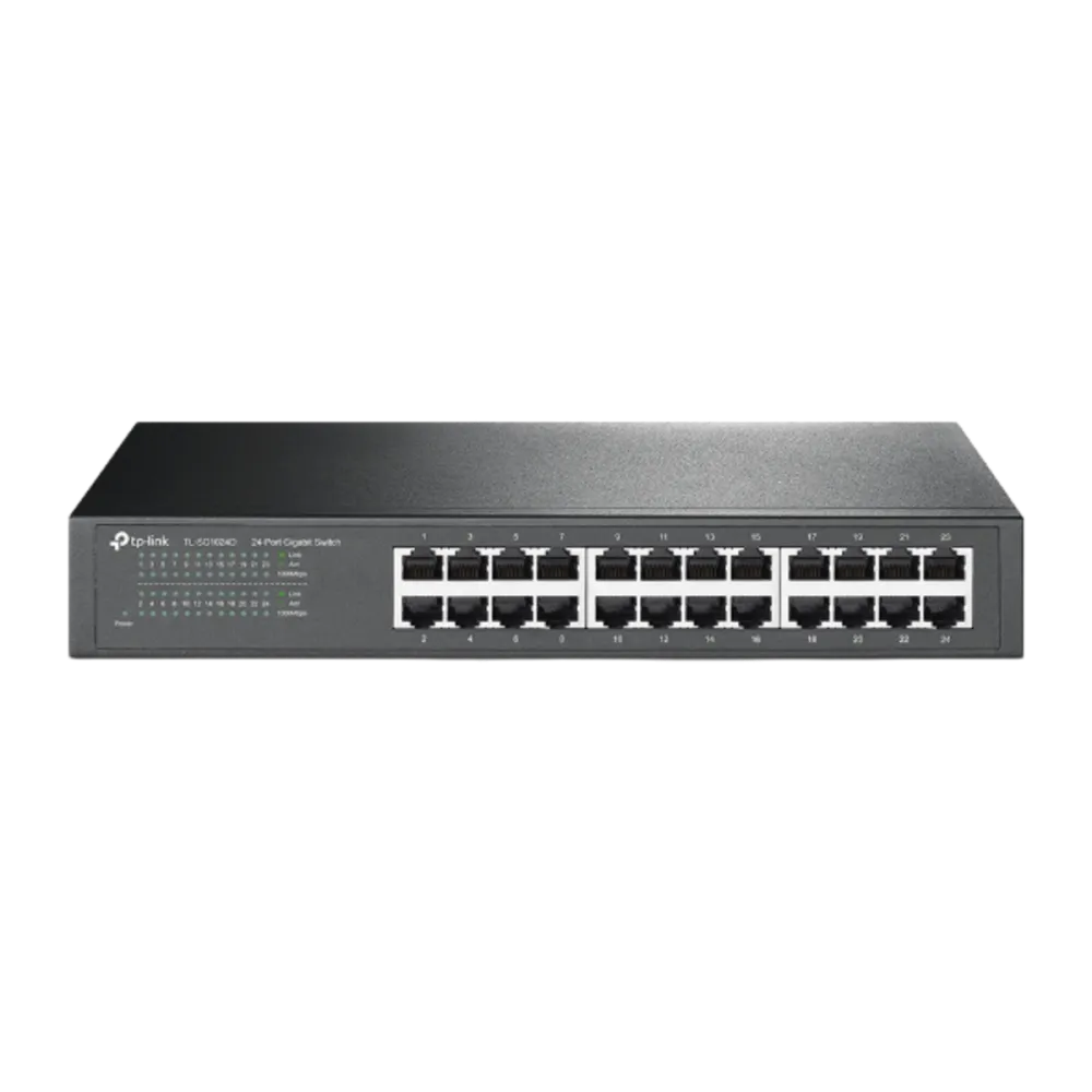 $NaNTP-Link (TL-SG1024D) 24-Port Gigabit Desktop / Rackmount switch- Black 24x 10/100/1000Mbps ports Innovative energy-efficient technology saves power consumption Supports MAC address self-learning, Auto MDI/MDIX and Auto negotiation Plug & play design