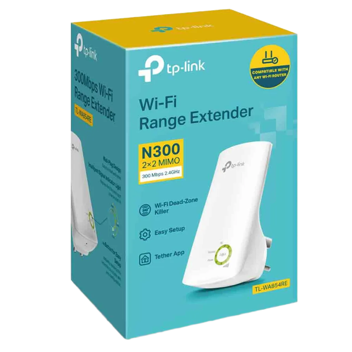 TP-Link (TL-WA854RE) 300Mbps Universal Wi-Fi Range Extender - White- Button: WPS Button, Reset Button- Mount: Socket Mounted Range Extender- Antennas: 2x Internal Antenna