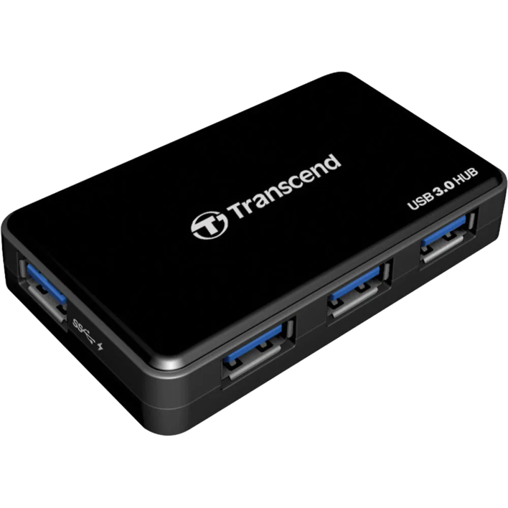 $NaNTranscend (TS-HUB3K) USB3.1 Gen 1 4-Port USB HUB with 2A output - Black - Suitable for adding External portable drives, USB flash drives, keyboards or mice to Tablets, PC's or Laptops with Limited USB ports - 2A Power Output For Charging Mobile Devices, Power Banks or any 5V USB 2A required device.