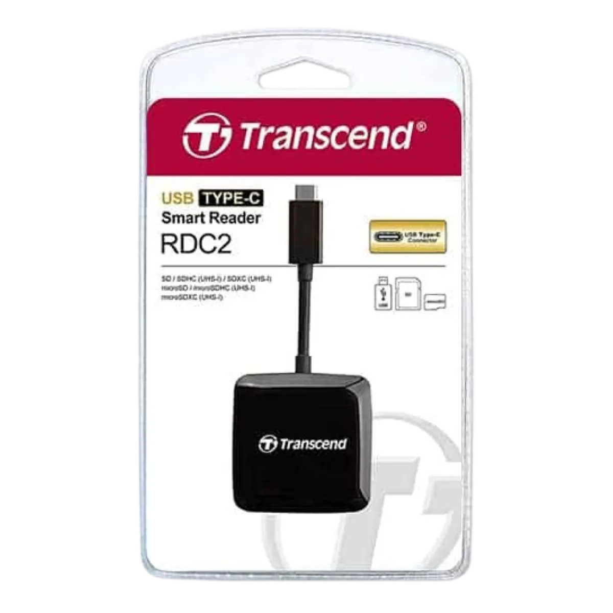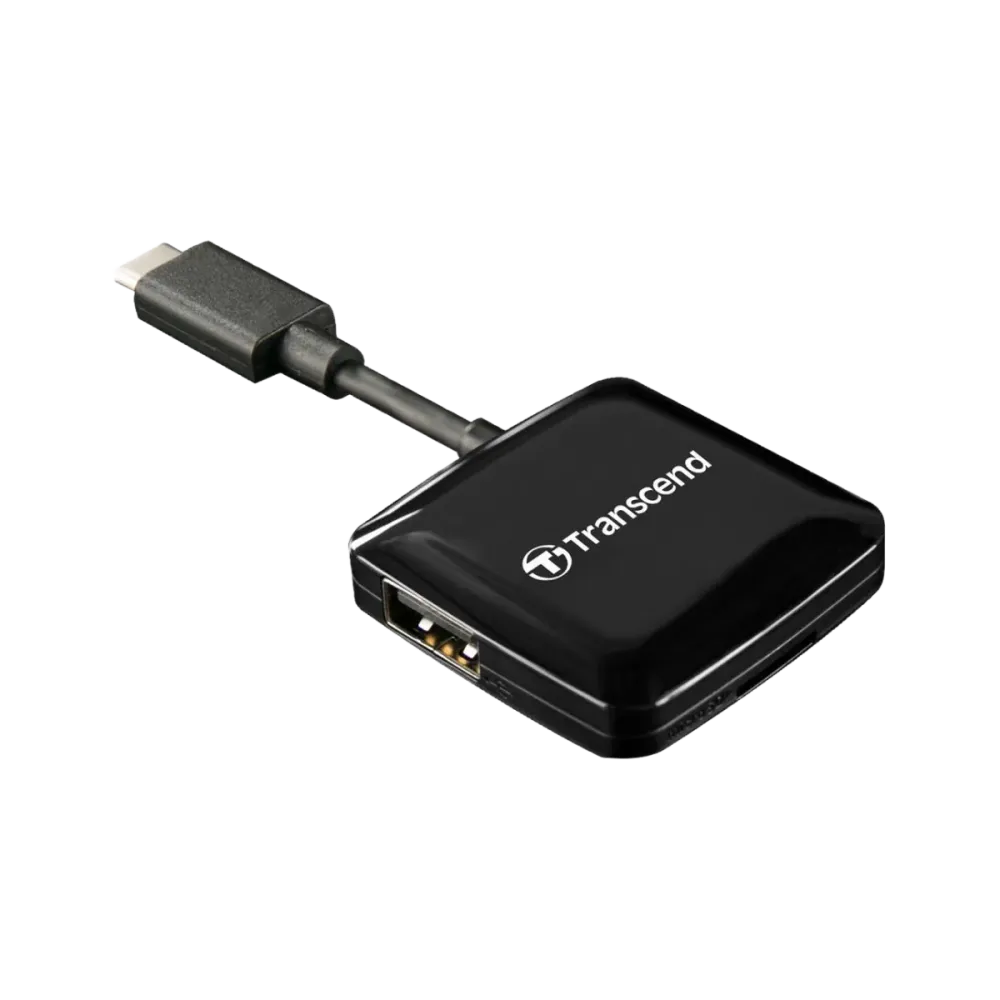 Transcend (TS-RDC2K) USB-C Card Reader - Black Interface: USB-C Connection Interface: USB2.0 Card Reader Slot(s): SD/microSD/USB Weight (Max.): 17g