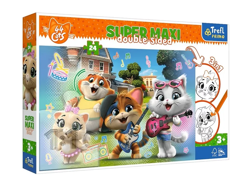 Trefl PRIMO - Super Maxi 24 is 3 games in one product: a large 24-piece puzzle as well as a colouring book and a game with elements to colour on the back of the puzzle!