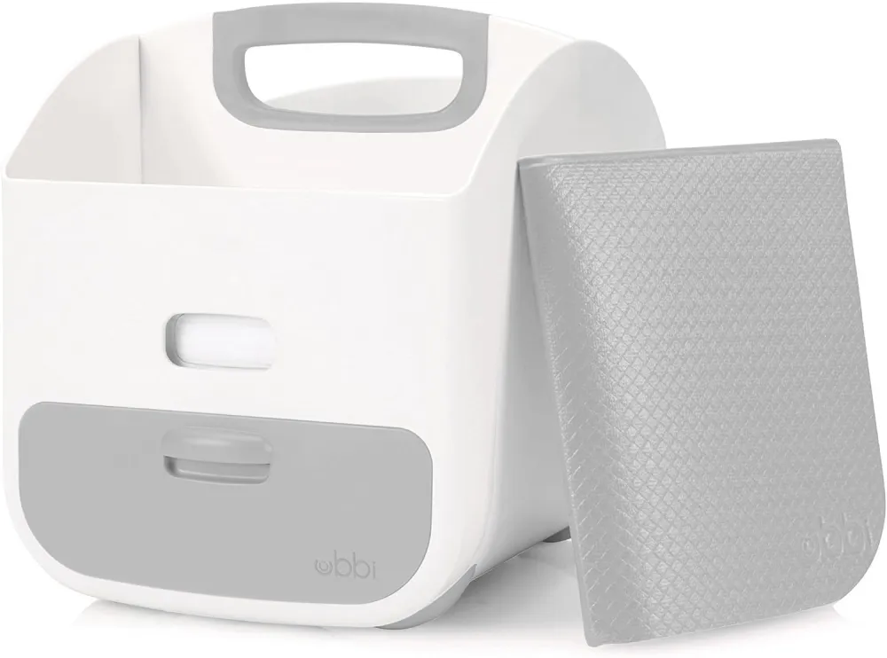 Portable & Convenient: The Ubbi Portable Diaper Caddy and Changing Mat doubles as a portable changing station, featuring a rubberized handle and feet for easy carrying from room to room or on the go.