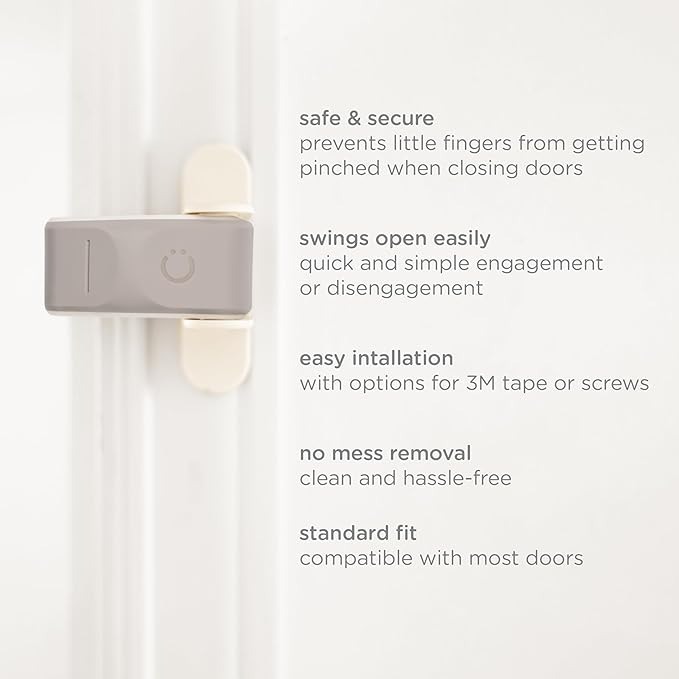 Adjustable, Universal Fit: Designed to fit most standard doors, this door guard is designed to fit your needs. Available in white and taupe, the Ubbi Pinch Guard complements your home décor, offering a safety solution that looks as good as it functions.