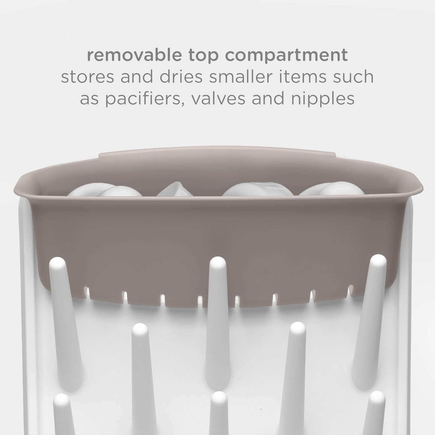 Removable Top Compartment: The built-in removable top pocket with draining holes is perfect for storing and drying smaller baby items like pacifiers, valves, lids, and nipples, keeping everything organized and within reach.