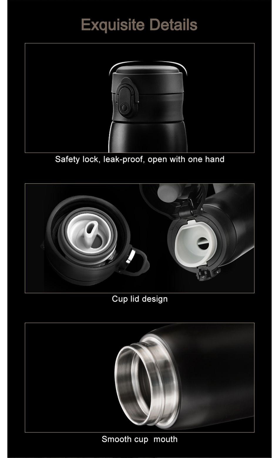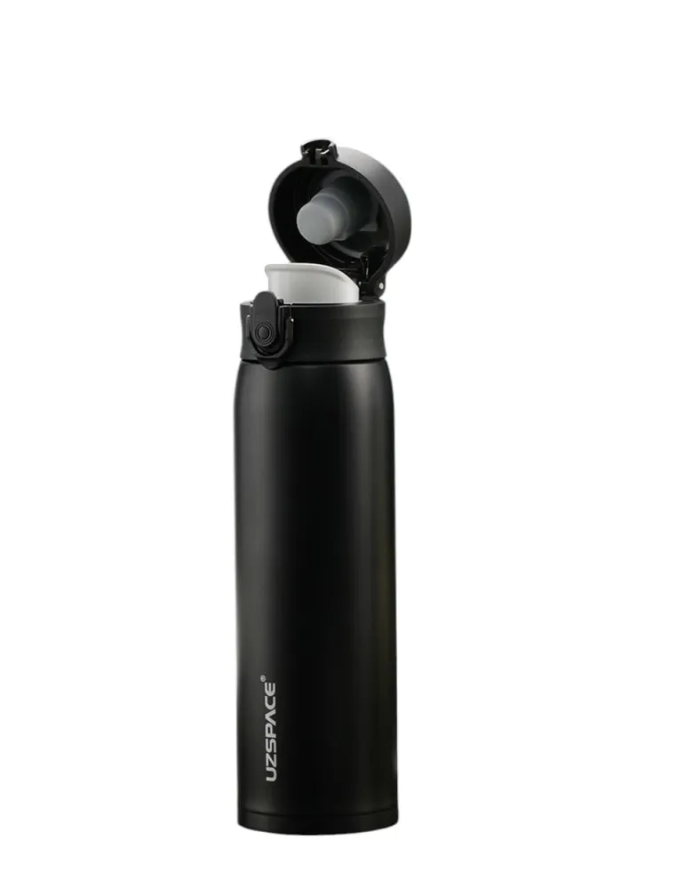 Uzspace Double Wall Stainless Steel Water Bottle Thermos Insulated 480Ml #4076 Black.