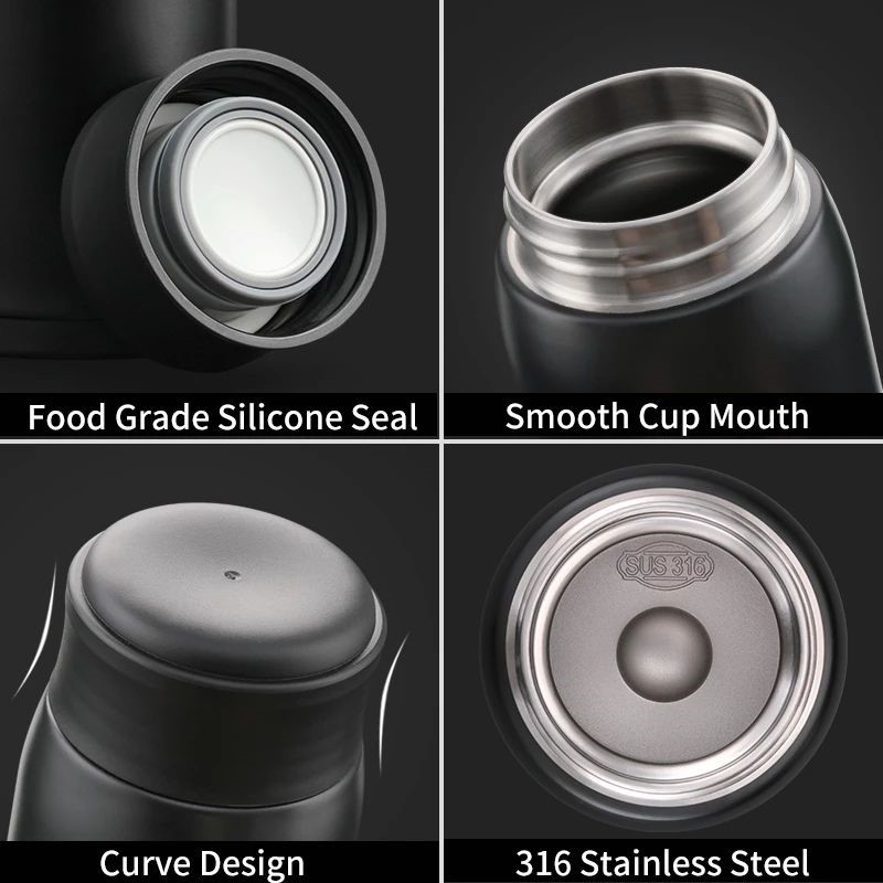 Uzspace Double Wall Thermos Stainless Steel Insulated Water Bottle X5 500ml #4075 Black.