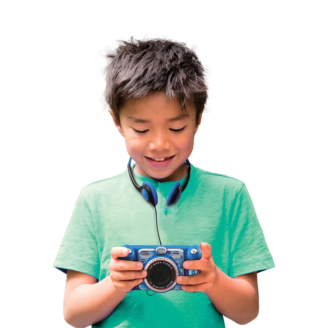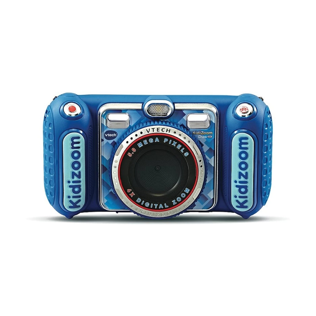 KidiZoom Duo DX features dual lenses, fun filters, and augmented-reality games. It includes a large 2.4" color screen for easy viewing and playback.