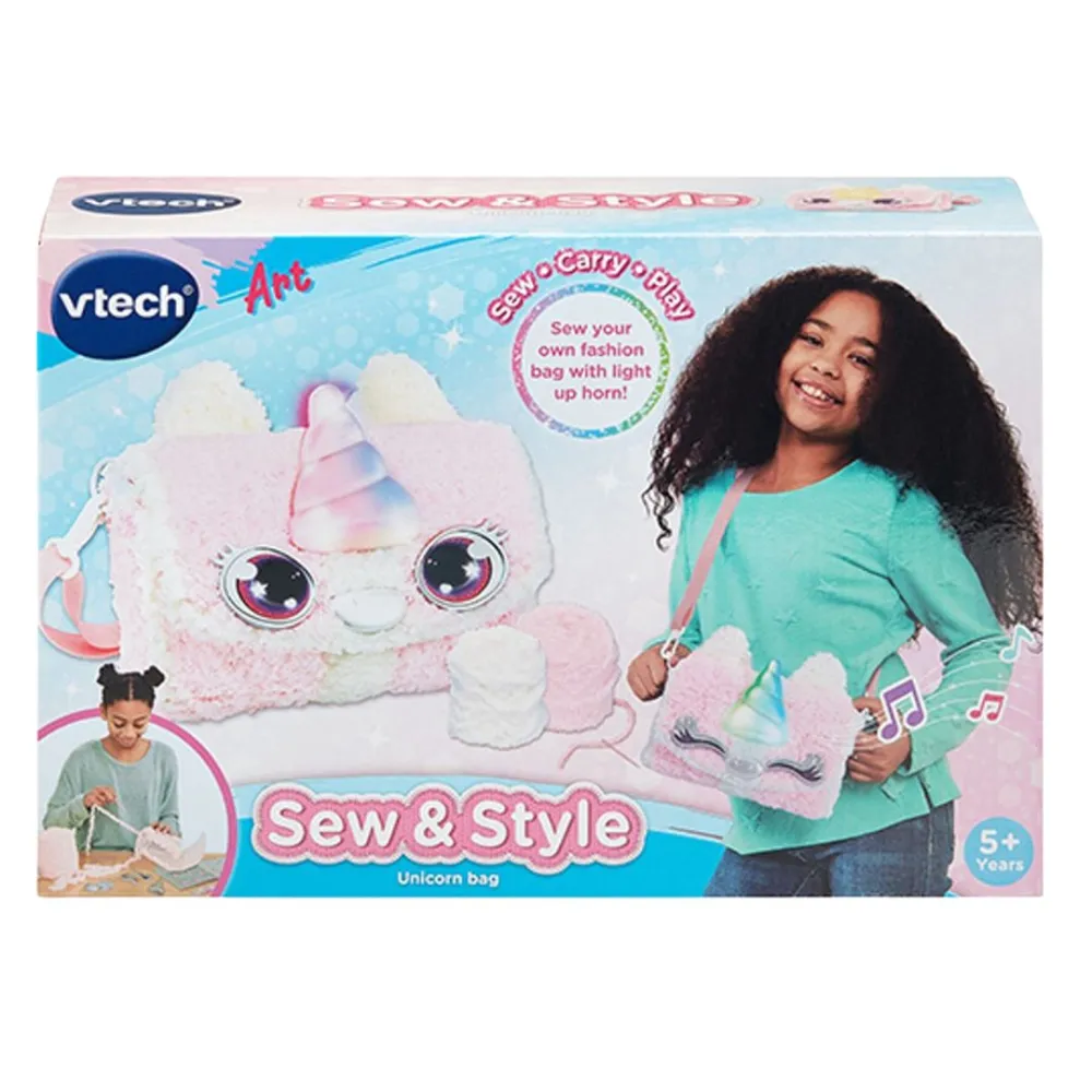 The Vtech Kid'couture - My Magic' Fashion Bag - Unicorn is a 100% handmade sewing and assembly kit designed for children aged 6 and up. This unique craft project allows kids to create and interact with their very own unicorn-shaped bag, combining creativity with fun features.