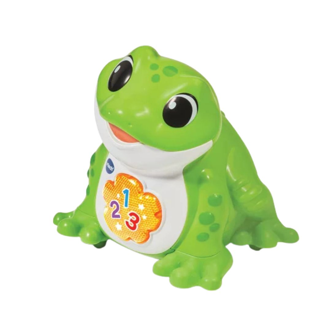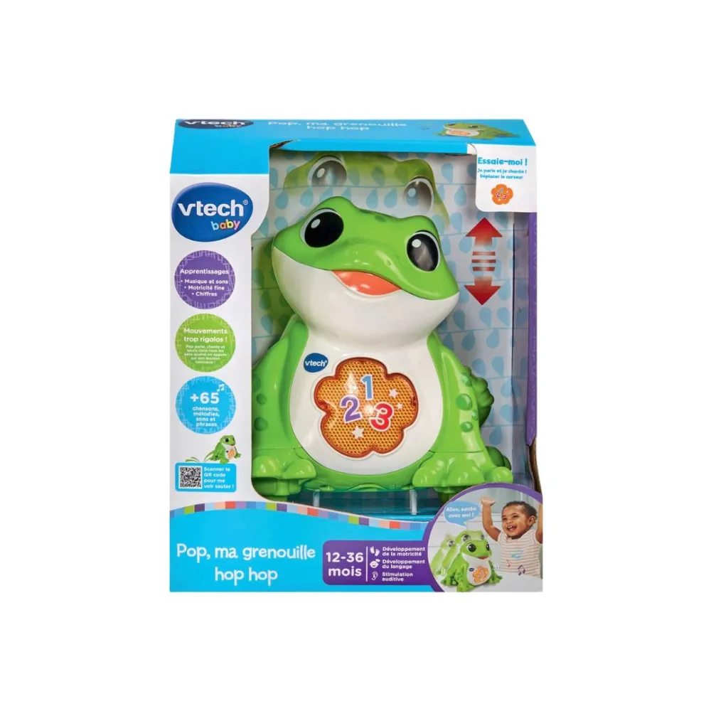 The Vtech Pop Ma Grenouille Hop Hop is an interactive toy designed for children aged 12 to 36 months, featuring a playful frog that encourages singing and bouncing adventures. With its animated cushions, Pop the frog hops around, enticing little ones to catch it. The toy includes two game modes to enhance play and learning.