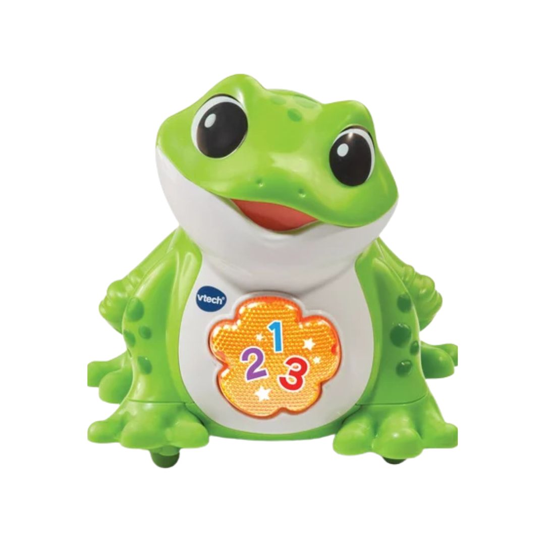 - Two game modes: 'Follow Me!' encourages imitation with singing and hopping; 'Discoveries' teaches about frogs with songs and melodies