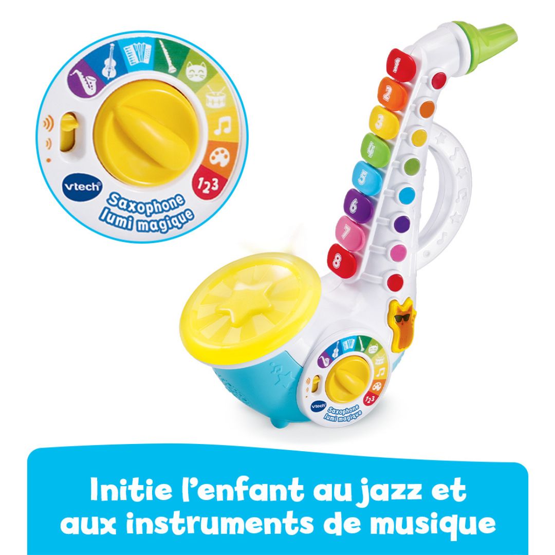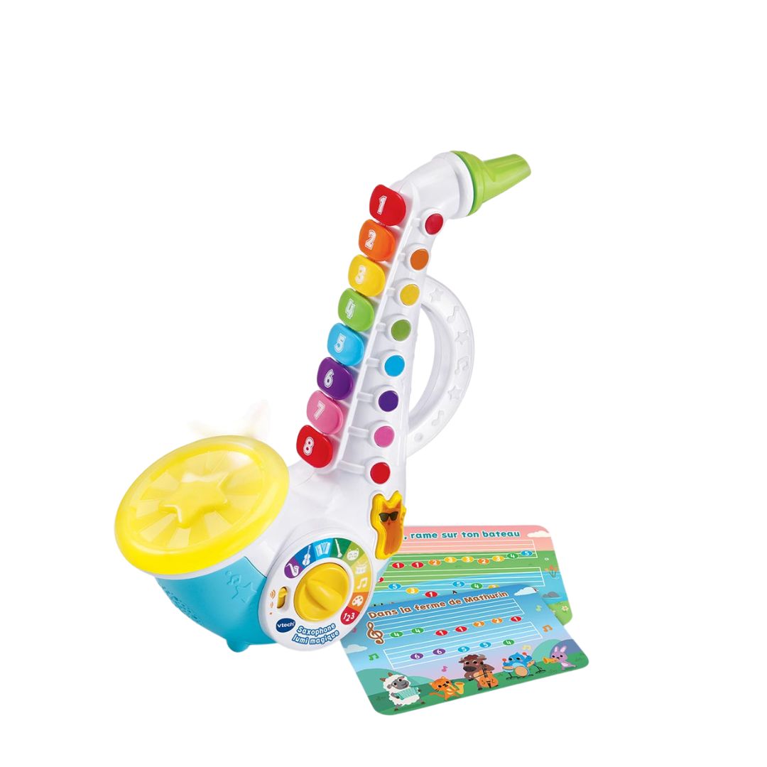 The Vtech Saxophone Lumi Magique is a vibrant musical instrument designed for children, allowing them to explore music, instruments, numbers, and colors through engaging jazz rhythms. This saxophone encourages creativity and interactive play.