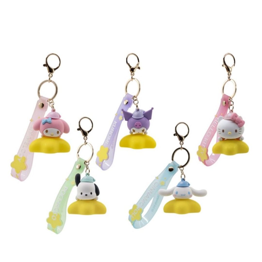 The Sanrio Light-up Star Series Keychain With Hand Strap features delightful key holders from Hello Kitty and Friends, designed by YuMe Toys.