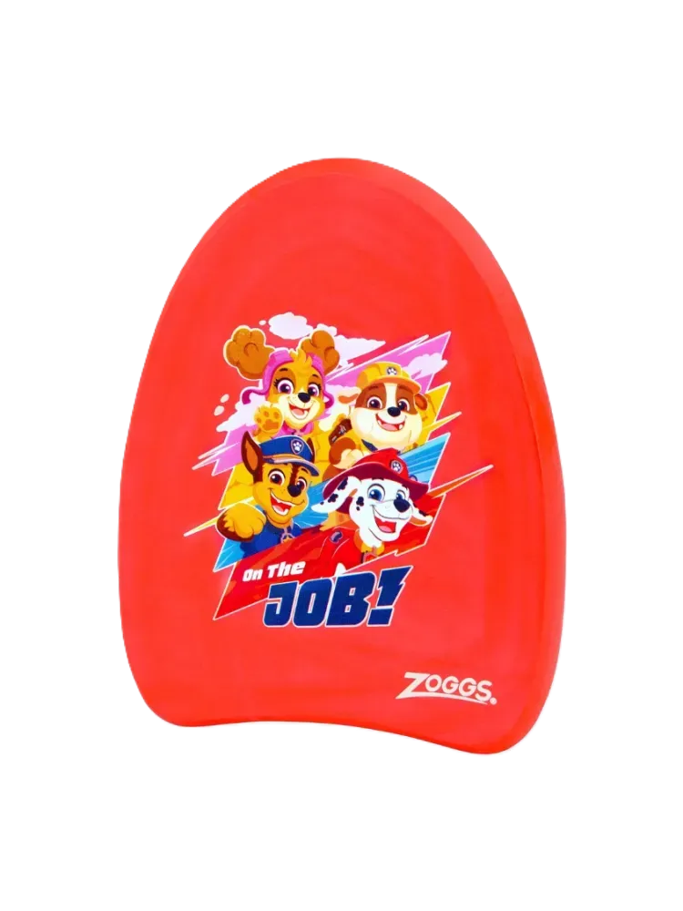 Zoggs Paw Patrol Kickboard featuring Chase, Marshall, Skye, and Rubble, perfect for young swimmers