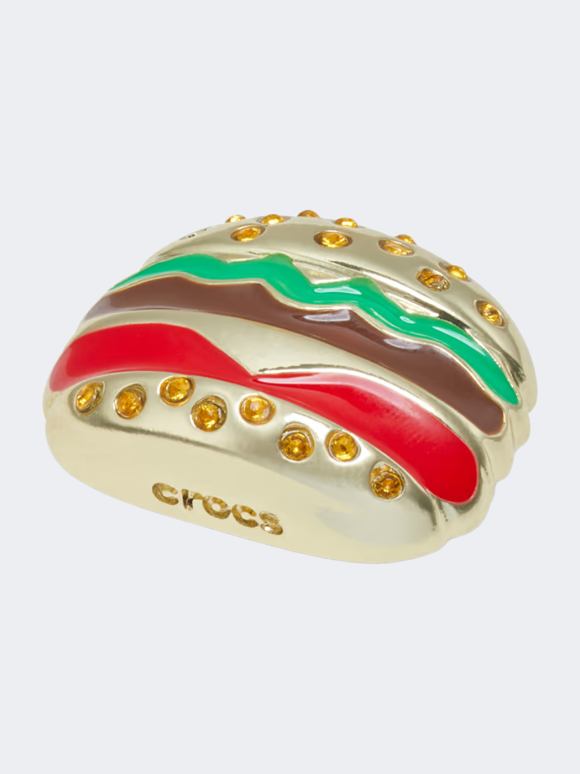 Pop some personality into your shoes with this Gold Burger Jibbitzâ„¢ charm. It's the perfect addition to your favorite pairs of clogs, slides, and more.