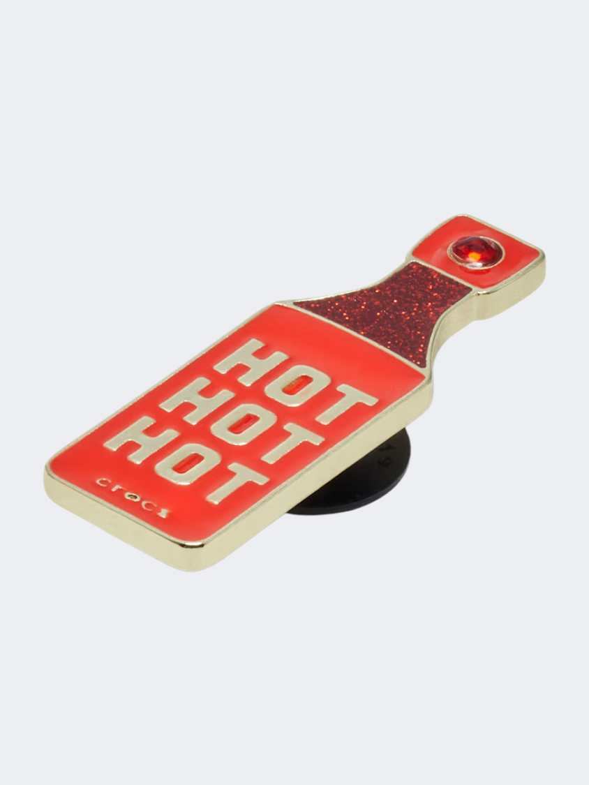 Pop some personality into your shoes with this Gold Hot Hot Hot Sauce Jibbitzâ„¢ charm. It's the perfect addition to your favorite pairs of clogs, slides, and more.