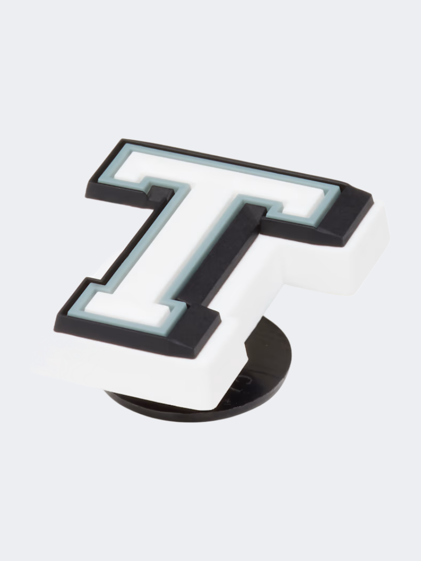 Use these varsity-style Jibbitzâ„¢ charms to spell your name or initials, show off your school or team pride, or write just about anything else! The white letter has a grey outline and a black shadow, so you can be sure that everyone will see these classic letters.