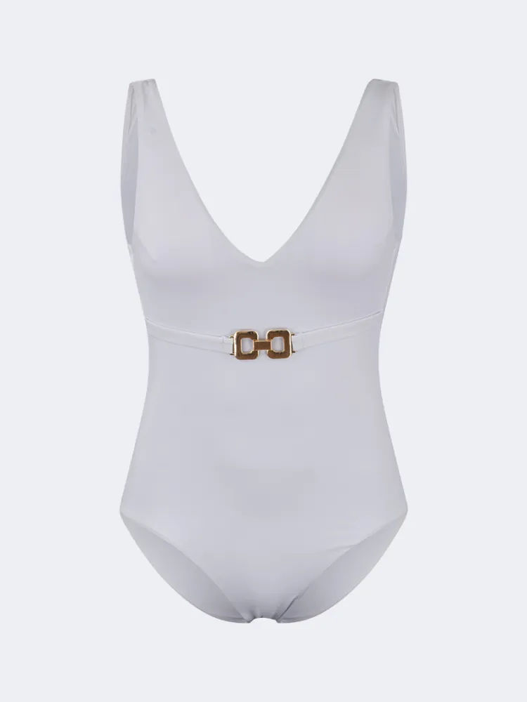 ?Flattering one-piece design with high-cut leg for a modern, streamlined look