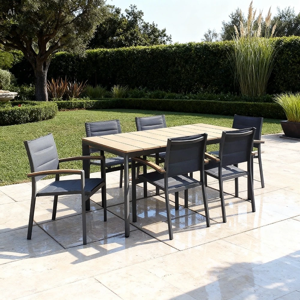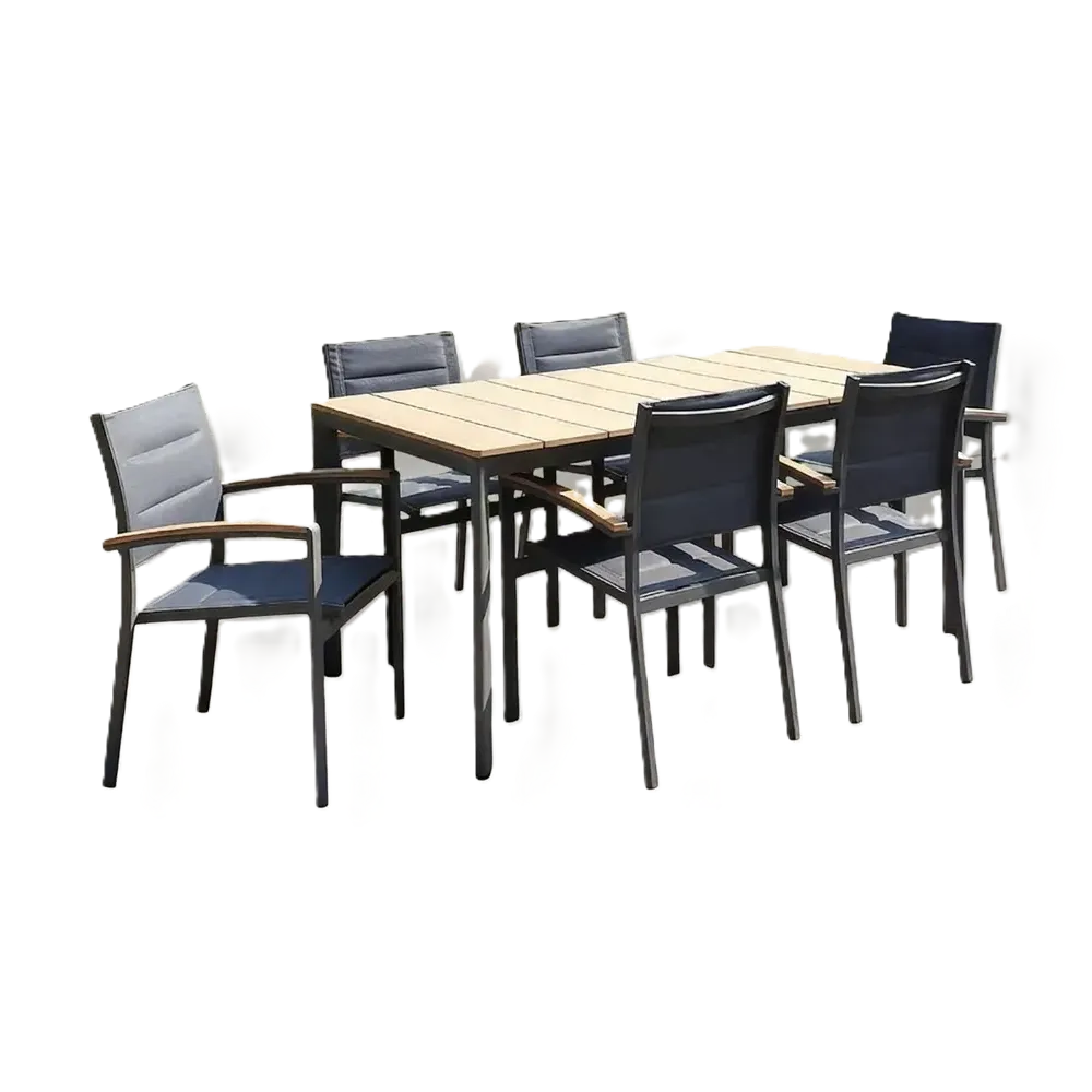 Outdoor Dining Set Furniture 088/202-6 Grey+Greige crafted to combine convenience with a modern look.