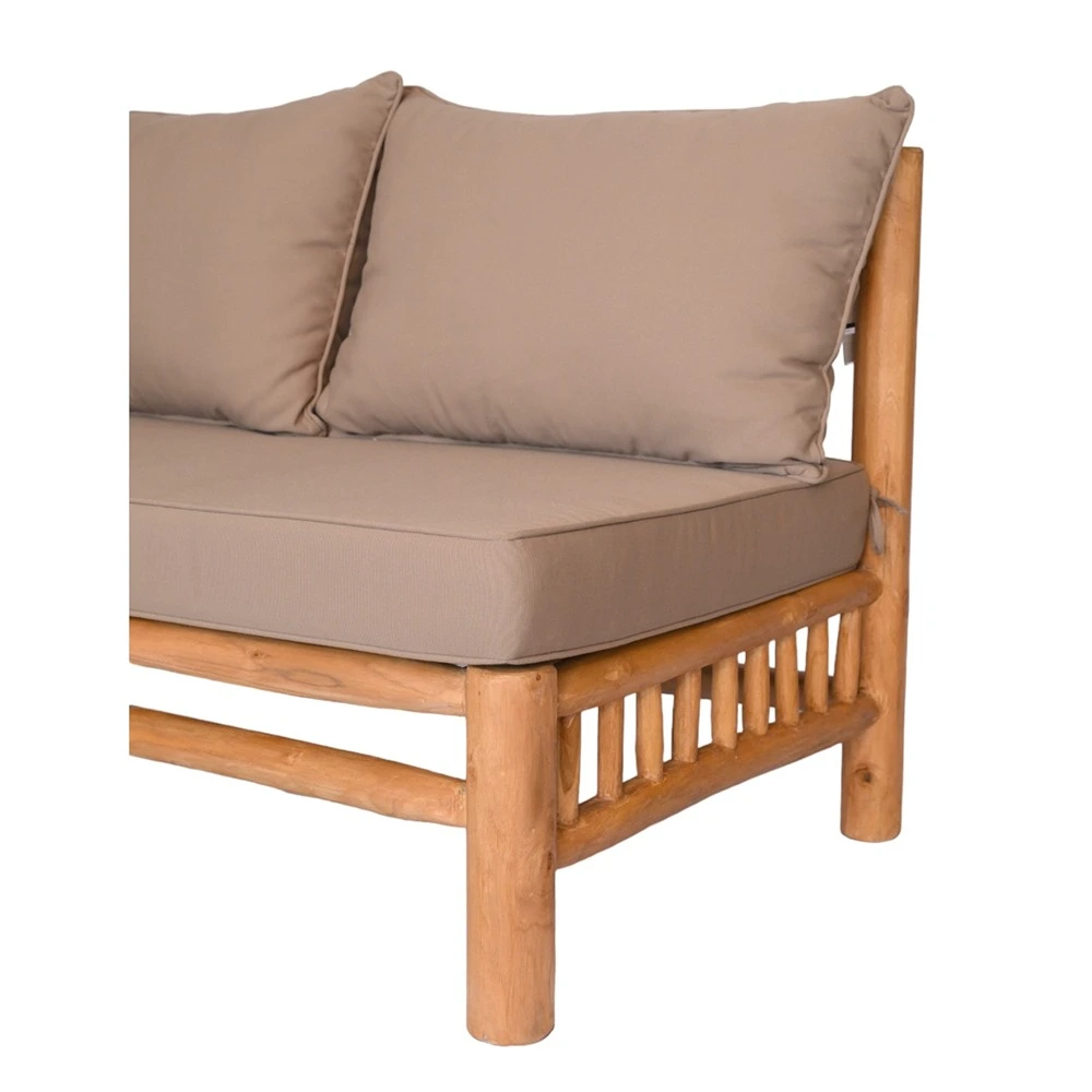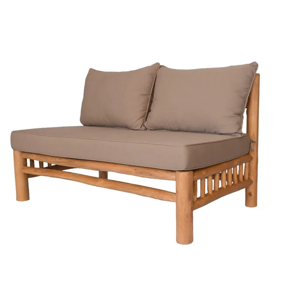 Two-seat sofa with teak wood frame and armless straight-line design.