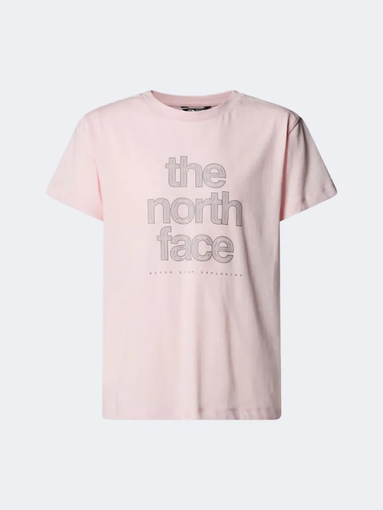 Relaxed fit short sleeve tee with reflective "The North Face" logo on front and smaller logo in the back